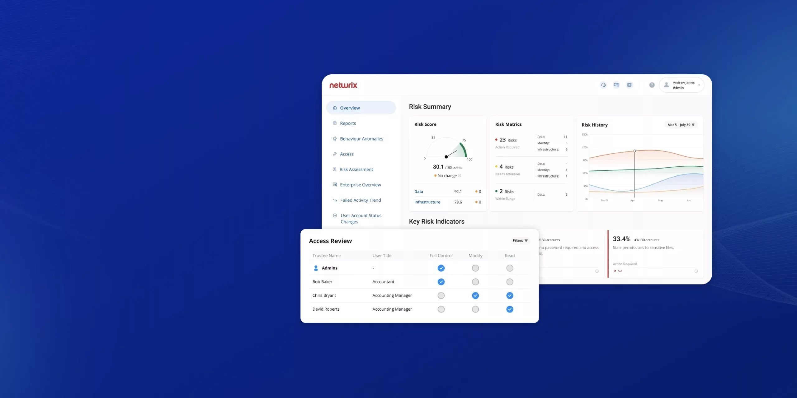 Las brechas de datos están a la orden del día. Las soluciones de Netwrix pueden ayudar a descubrir y reducir los riesgos de los datos sensibles, mitigando de forma proactiva la sobreexposición de las organizaciones y detectando rápidamente cualquier incumplimiento en las políticas y los comportamientos sospechosos de los usuarios.